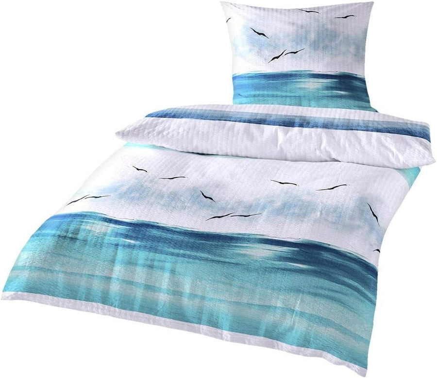 • ✅: Maritime Bettwäsche mit luftig, leichtem Meer-Design mit Fernweh Charakter: Leichte Seersucker-Qualität für den Sommer