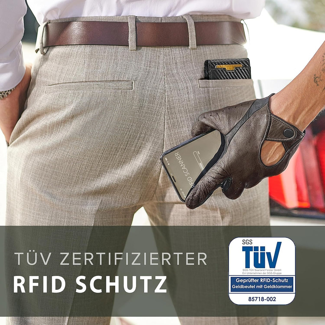 - 𝗧Ü𝗩 𝗚𝗘𝗣𝗥Ü𝗙𝗧𝗘 𝗦𝗜𝗖𝗛𝗘𝗥𝗛𝗘𝗜𝗧 - Durch ein unabhängiges Institut geprüfte Abschirmung der RFID Frequenz 13,56 MHz. Ihre Kreditkarten mit NFC-Chip werden vor dem Auslesen geschützt