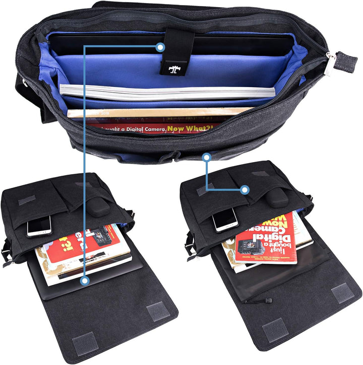 - ๐๐๐๐๐๐๐ ๐๐๐๐๐๐๐๐๐๐๐ โ die Laptoptasche ist in 3 Hauptfรคcher unterteilt. Das erste Fach der Laptop Tasche ist gepolstert und sichert durch einen Klettverschluss das Notebook ab, die anderen 2