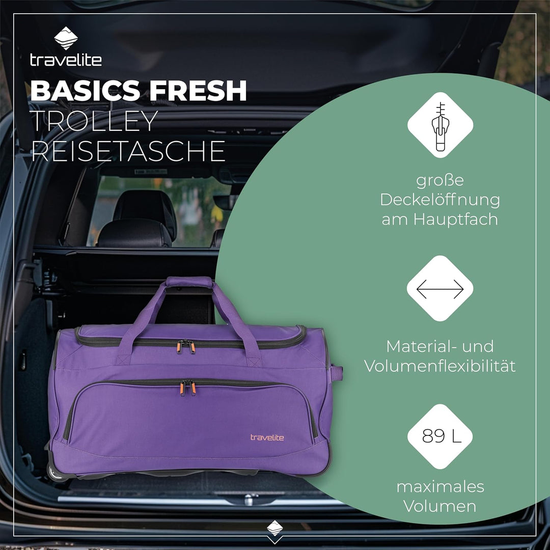 travelite 2-Rad Trolley Reisetasche Grösse L, Gepäck Serie BASICS FRESH: Weichgepäck Reisetasche mit