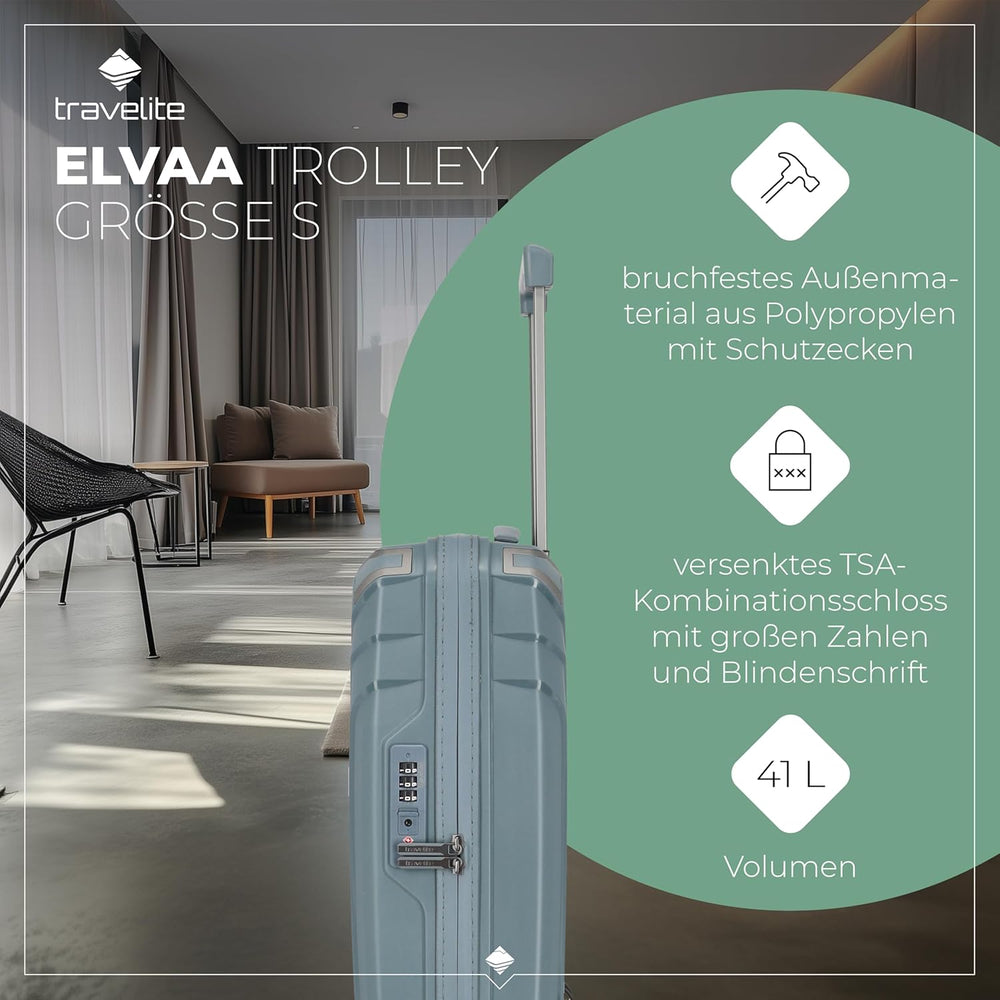 - ELVAA: Das Design des Reisekoffers ist auf Sicherheit ausgelegt. Die Schutzecken, der wasserabweisende Reissverschluss und die bruchfeste und kratzunempfindliche Oberfläche aus robustem Polypropylen schützen den Inhalt vor Beschädigungen