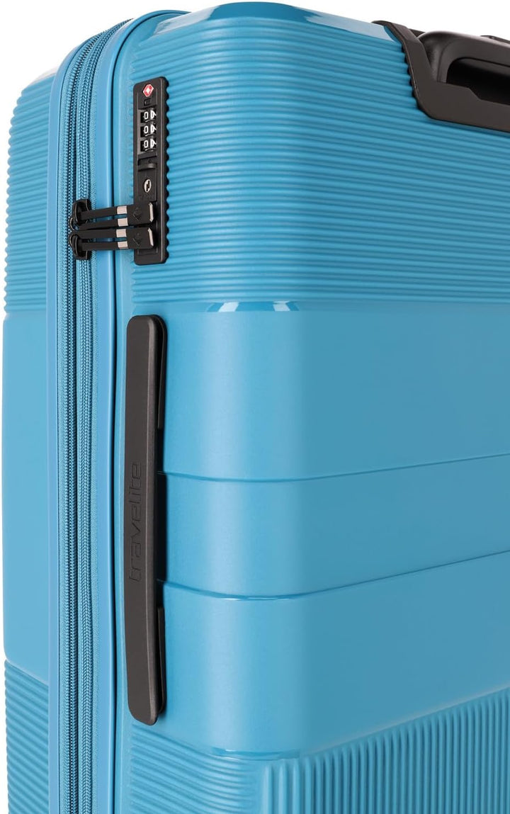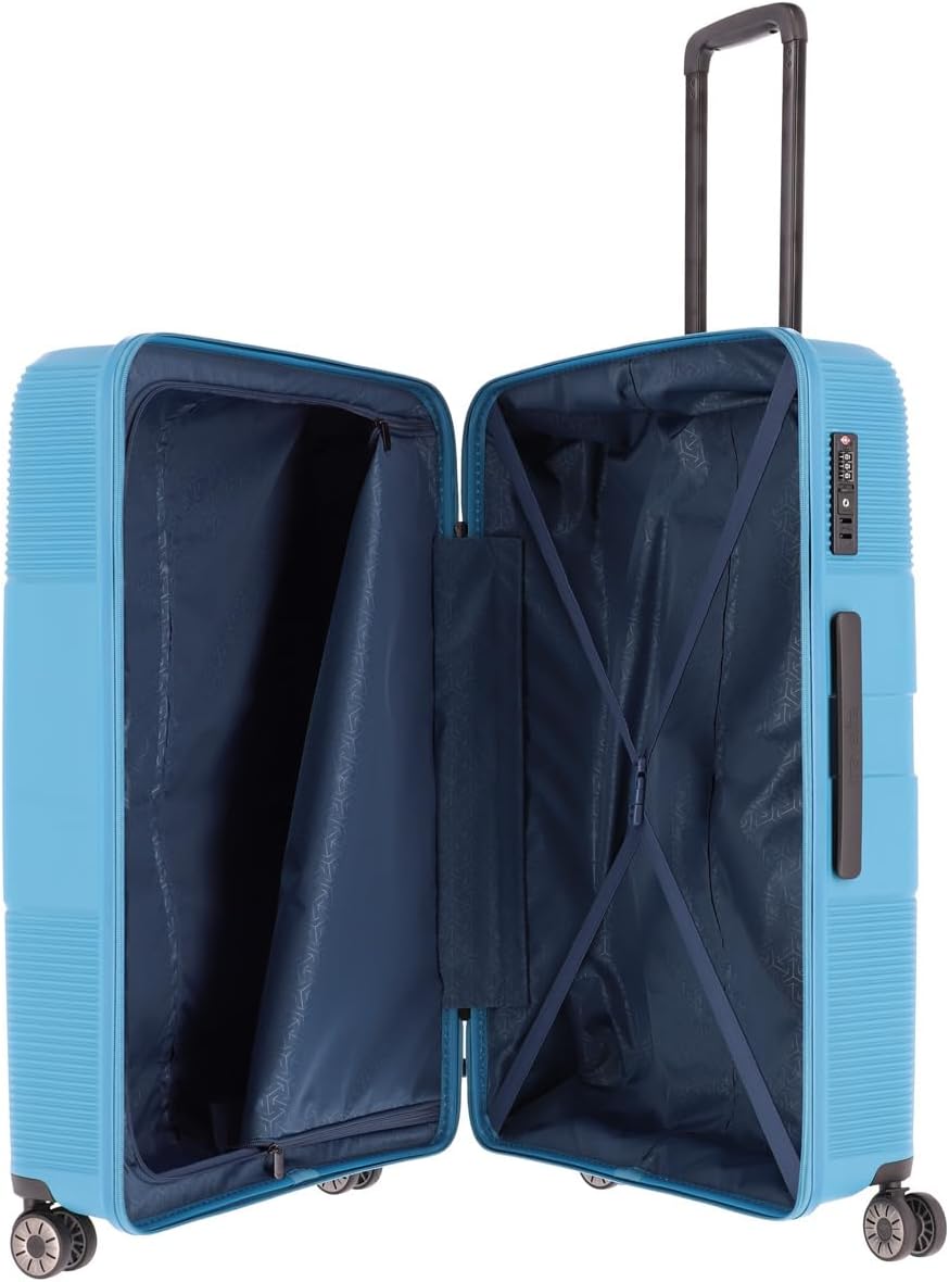 - LIEFERUMFANG: 1 x Reisekoffer Grösse L Masse: 76 x 51 x 29 cm; Volumen 98 Liter; Gewicht 4,3 kg; Material Polypropylen; Farbe Türkis; mit TSA Zahlenschloss