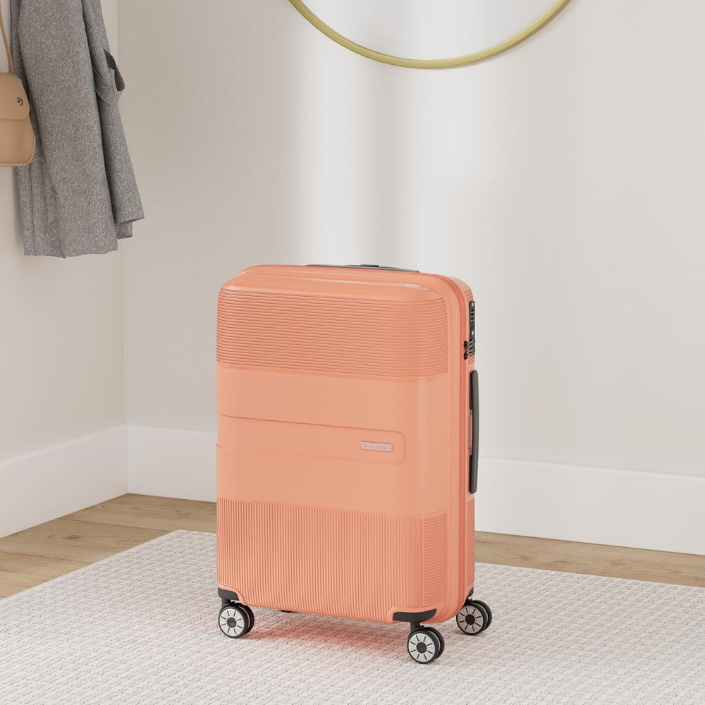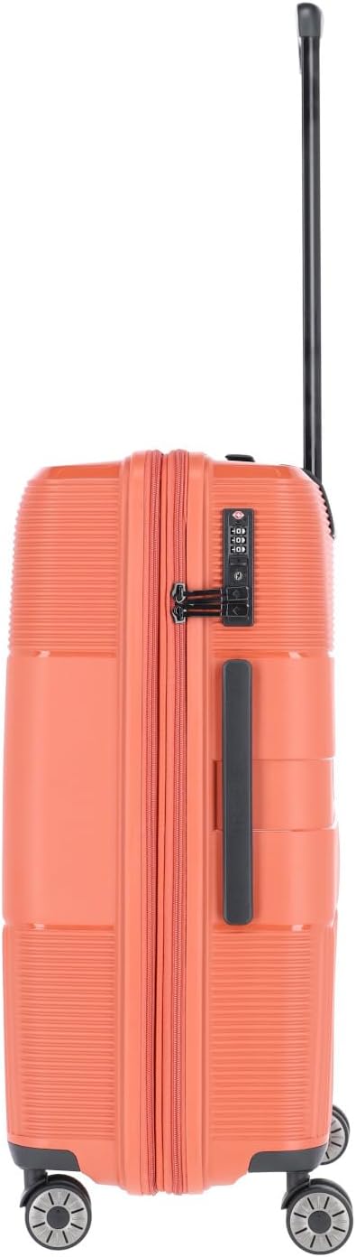 - LIEFERUMFANG: 1 x Reisekoffer Grösse M Masse: 65 x 45 x 26 cm; Volumen 65 Liter (erweiterbar auf 75 Liter); Gewicht 3,7 kg; Material Polypropylen; Farbe Terracotta; mit TSA Zahlenschloss