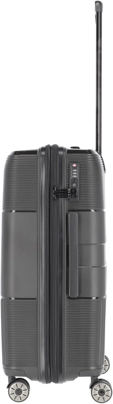 - LIEFERUMFANG: 1 x Reisekoffer Grösse M Masse: 65 x 45 x 26 cm; Volumen 65 Liter (erweiterbar auf 75 Liter); Gewicht 3,7 kg; Material Polypropylen; Farbe Schwarz; mit TSA Zahlenschloss