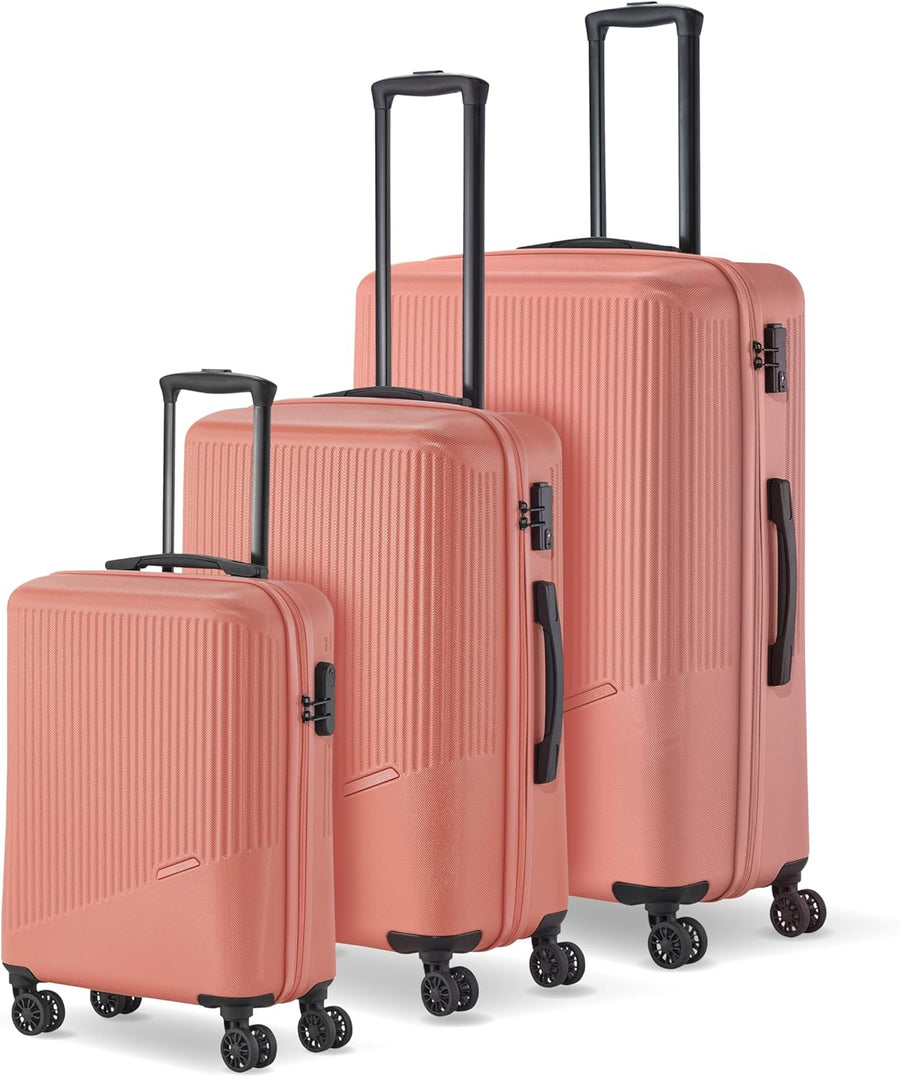 - LIEFERUMFANG: 1 x Rollkoffer Set Grösse L (77 cm), M (67 cm) und Handgepäckkoffer Masse 55 x 39 x 20 erfüllt IATA Norm; Material ABS; Farbe Koralle (Lachs); mit TSA Kombinationsschloss (Koffer Handgepäck ohne TSA)
