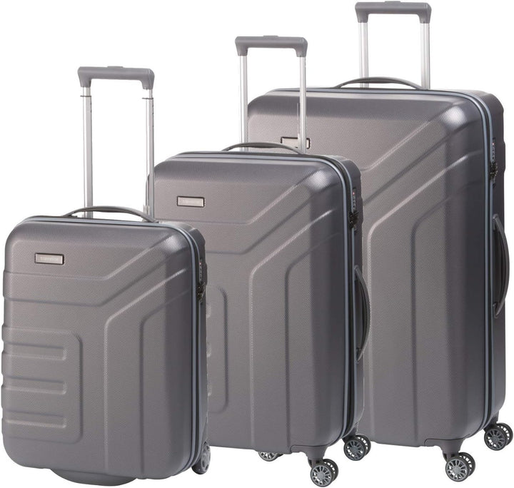 - LIEFERUMFANG: 1 x Koffer Set Hartschale; Grössen 4-Rad L (77 cm), 4-Rad M (70 cm) mit Dehnfalte und 2-Rad S Handgepäck Masse: 55 x 40 x 20 cm erfüllt IATA Norm; Material ABS; Farbe Anthrazit (Grau); alle Grössen mit TSA Schloss