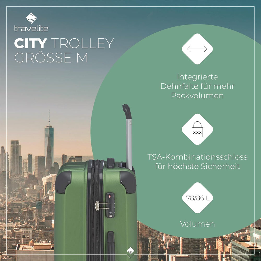 - CITY: Das Design des Trolleys ist auf Sicherheit ausgelegt. Der clevere Eckenschutz sowie die kratzfeste Oberfläche aus robustem ABS schützen den Inhalt vor Beschädigungen