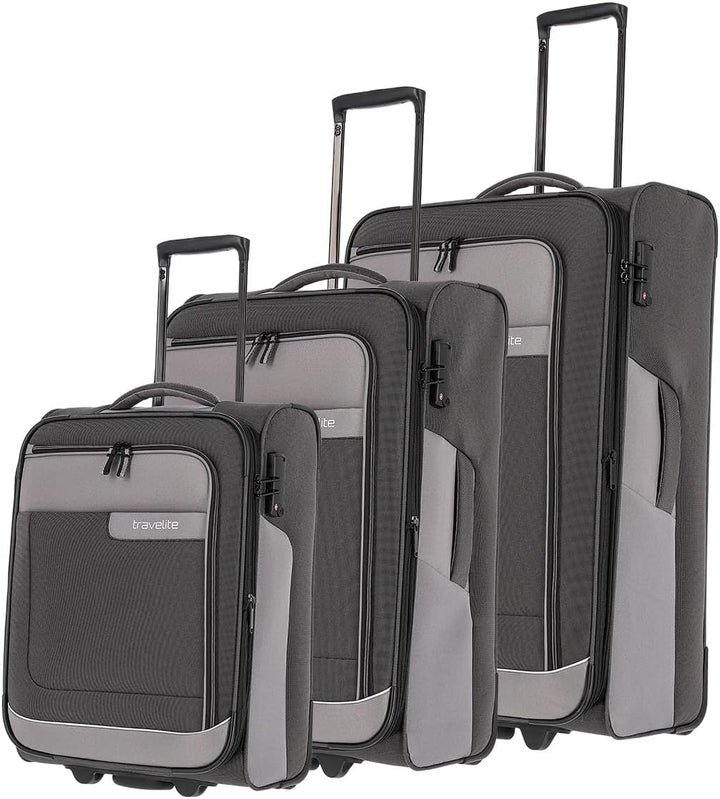 - LIEFERUMFANG: 1 x 3-teiliges Reisekoffer Set bestehend aus Grössen L (77 cm, 107 l), M (67 cm, 80 l) und Handgepäck Grösse S (55 x 39 x 20 cm, 37 l - erfüllt IATA Norm Boardtrolleymass); alle Grössen mit integriertem TSA Kombinationsschloss; Farbe