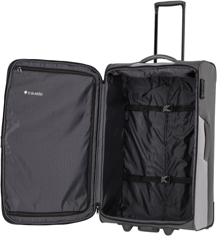 - INNENLEBEN: Die zwei grossen Aussentaschen sowie die durchdachte Inneneinteilung der Trolleys mit zwei Packgurten bieten viel Stauraum. Bei den Grössen L und M lässt sich das Volumen durch die integrierte Dehnfalte erweitern
