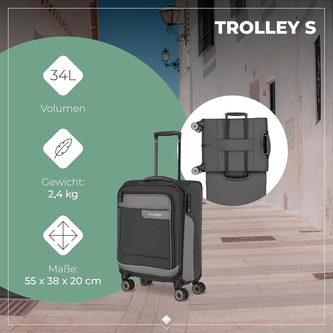 • VIIA: Nachhaltig unterwegs - die Weichschale und das Innenfutter der Rollkoffer Serie inklusive Reisetasche besteht zu 100% aus recyceltem Polyester. Der kleine Reisekoffer kann bei vielen gängigen Fluggesellschaften mit an Bord genommen werden