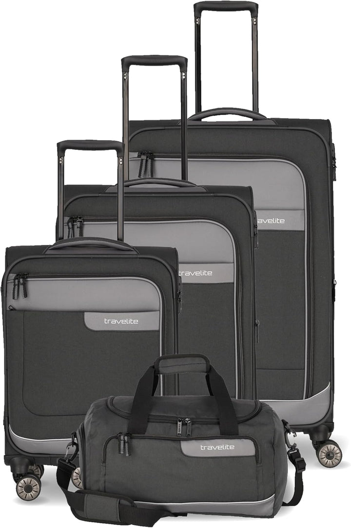 Travelite Kofferset 4 teilig Weichschale 4 Rollen, Grössen S-M-L + Reisetasche,nachhaltig, VIIA Reis