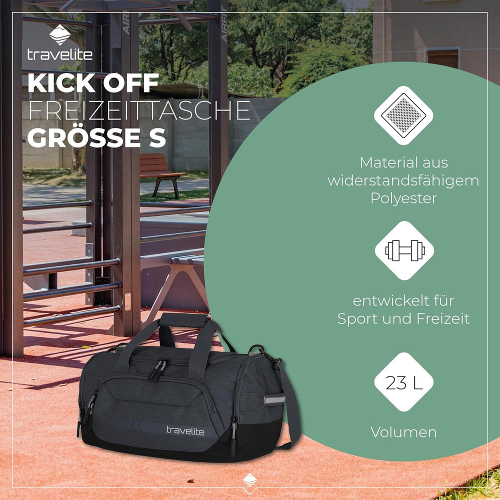 - KICK OFF: Die für Sport und Freizeit entwickelte Tasche aus robustem Polyester bietet zwei bequeme Tragegriffe, einen abnehmbaren und längenverstellbaren Schultergurt, sowie eine Aufsteckfunktion für Ihren Koffer
