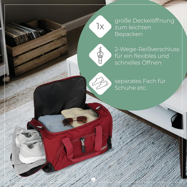 - INNENLEBEN: Die Tasche hat eine grosse Öffnung zum leichten Bepacken und zusätzlich drei grosse Aussentaschen, wovon eine als Schuh- oder Nassfach dienen kann
