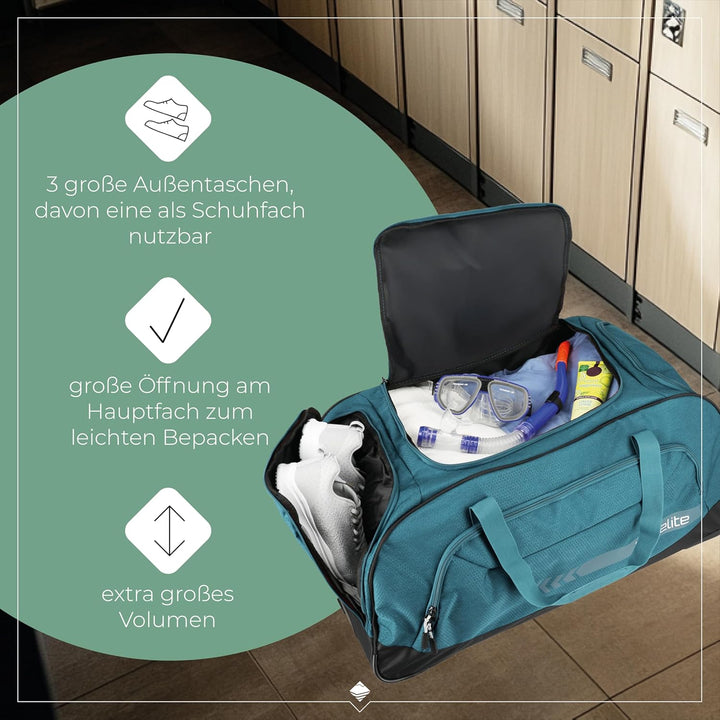 - INNENLEBEN: Die Tasche hat eine grosse Öffnung zum leichten Bepacken und zusätzlich drei grosse Aussentaschen, wovon eine als Schuhfach dienen kann