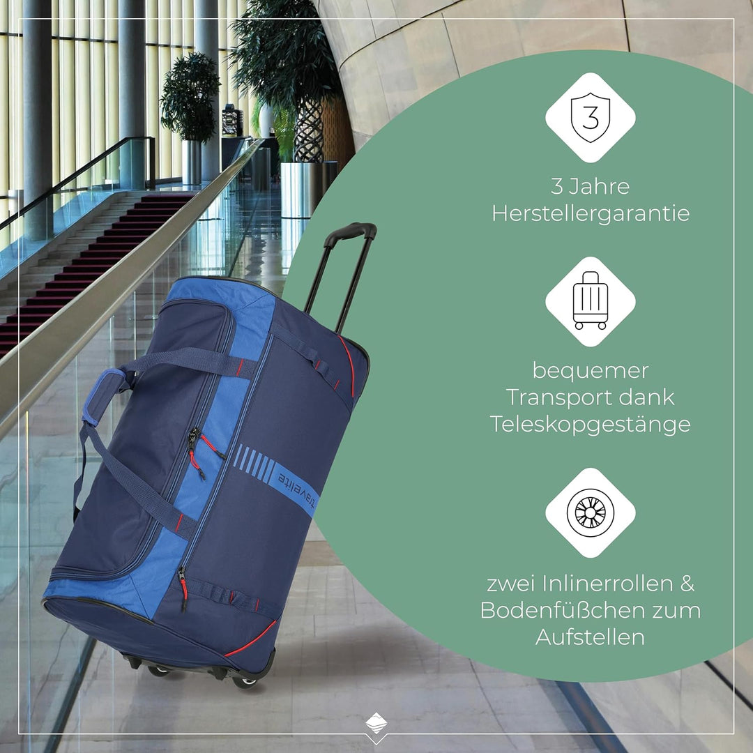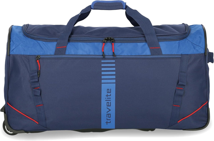 - LIEFERUMFANG: 1 x Rollenreisetasche mit 2 Rollen, Masse 36 x 71 x 35 cm, Volumen 86 Liter, Gewicht 2,4 kg, Material Polyester, Farbe Marine/Rot