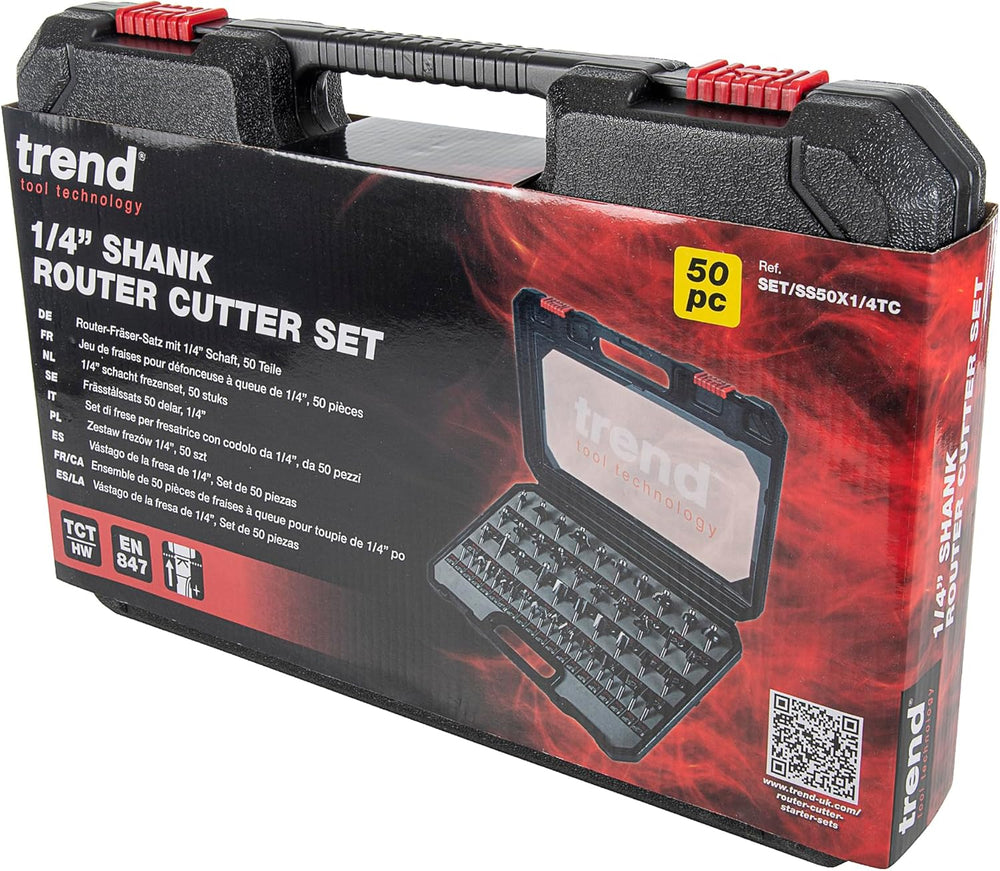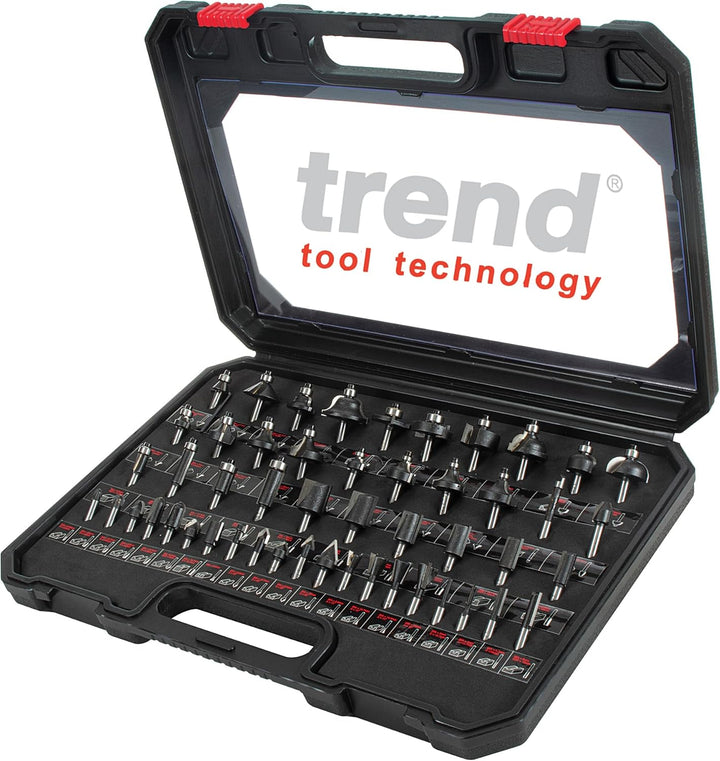 - Komplett-Set: Dieses 50-teilige Fräser-Set bietet eine Vielzahl von beliebten TCT-Bits, darunter 10 gerade, 22 kugelgeführte und 18 ungelenkte Fräser.
