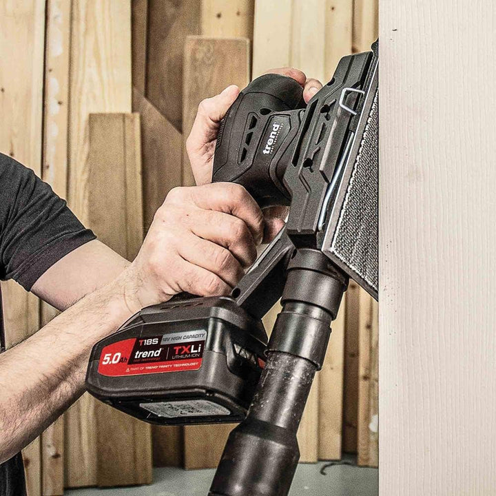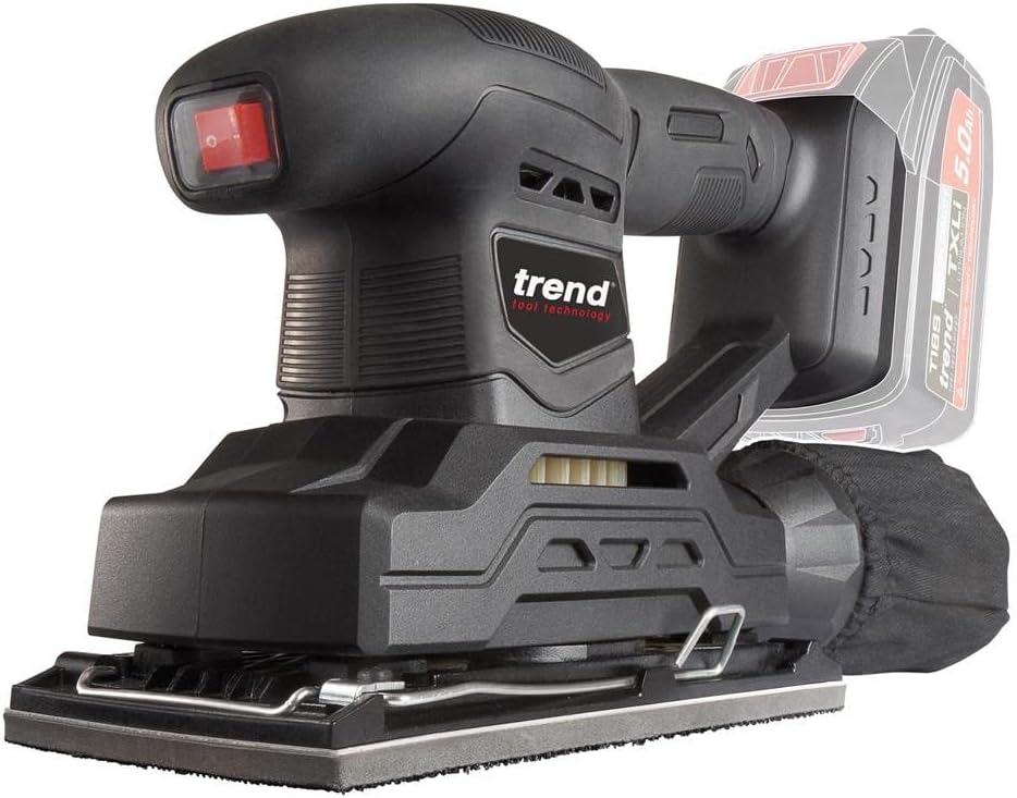 - KABELLOSES ARBEITEN: Der Trend T18S ist ein 18V kabelloser Drittelplatten-Schleifer, der ohne Akku und Ladegerät betrieben wird. Diese sind separat erhältlich und ermöglichen eine flexible Nutzung des Gerätes.