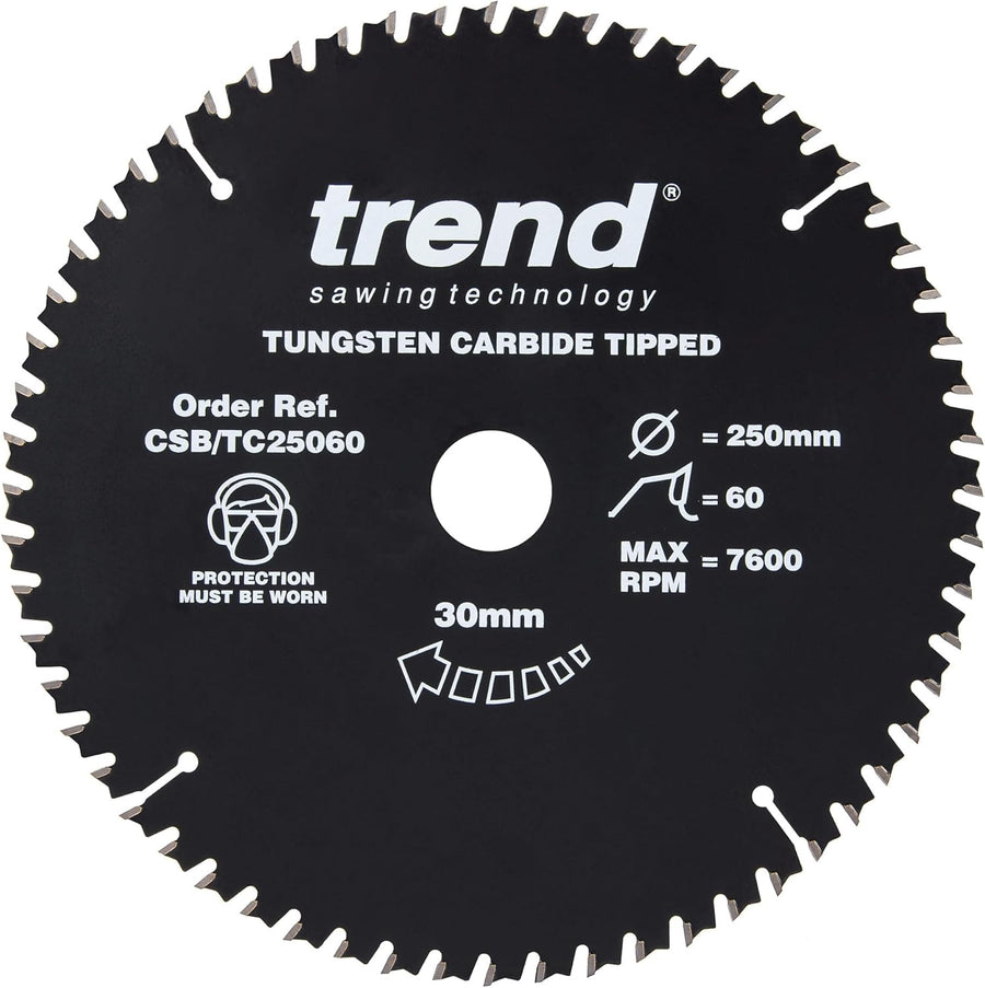 Trend Craft Pro Sägeblatt – 250 mm Durchmesser 30 mm Bohrung 60 Zähne TCT