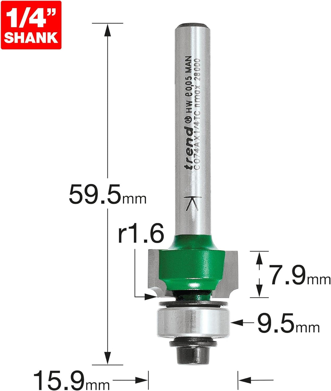 Trend Craft Rundfräser mit Schaftlager, C074AX1/4TC B/GUIDED OVOLO, 1,6 mm Rad, B/GUIDED OVOLO, 1,6