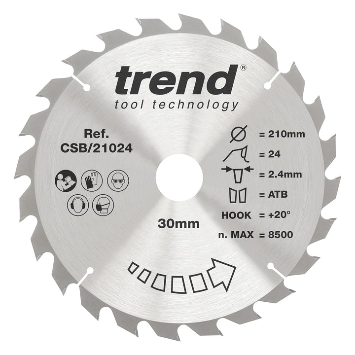 Trend CraftPro Allzweck-TCT-Kreissägeblatt für Tischsägen, 210mm Durchmesser x 24 Zähne x 30mm Bohru