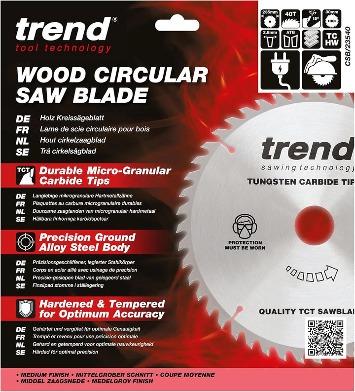 - HOCHLEISTUNGSKLINGEN: Die Trend Sägeblätter sind leistungsstarke Klingen mit mikrogranularen Wolframkarbid-Spitzen für optimale Kantenhaltbarkeit und Schnittqualität in verschiedenen holzbasierten Materialien.