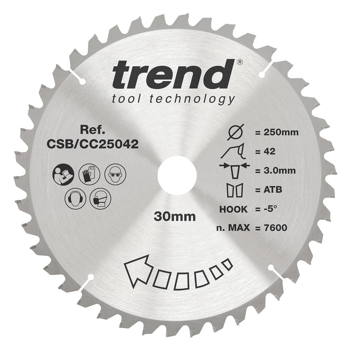 Trend CraftPro Negative Hook Crosscutting TCT Kreissägeblatt, 250mm Durchmesser x 42 Zähne x 30mm Bo