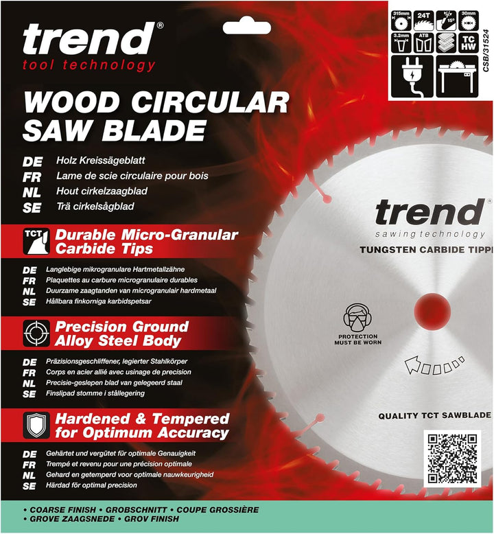 - HOCHLEISTUNGSKLINGEN: Die Trend Sägeblätter sind leistungsstarke Klingen mit mikrogranularen Wolframkarbid-Spitzen für optimale Kantenhaltbarkeit und Schnittqualität in verschiedenen holzbasierten Materialien.