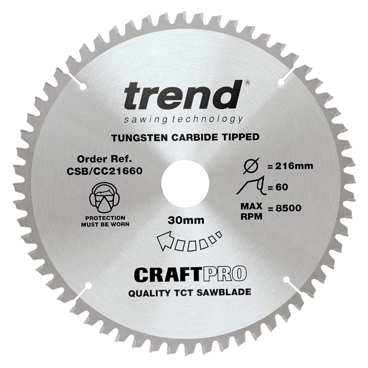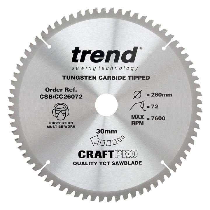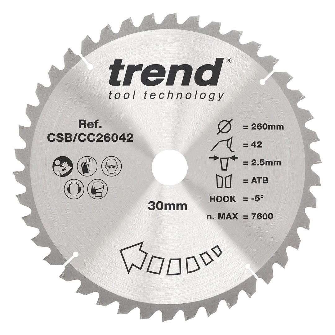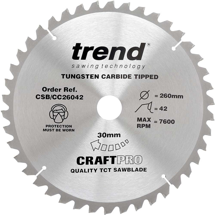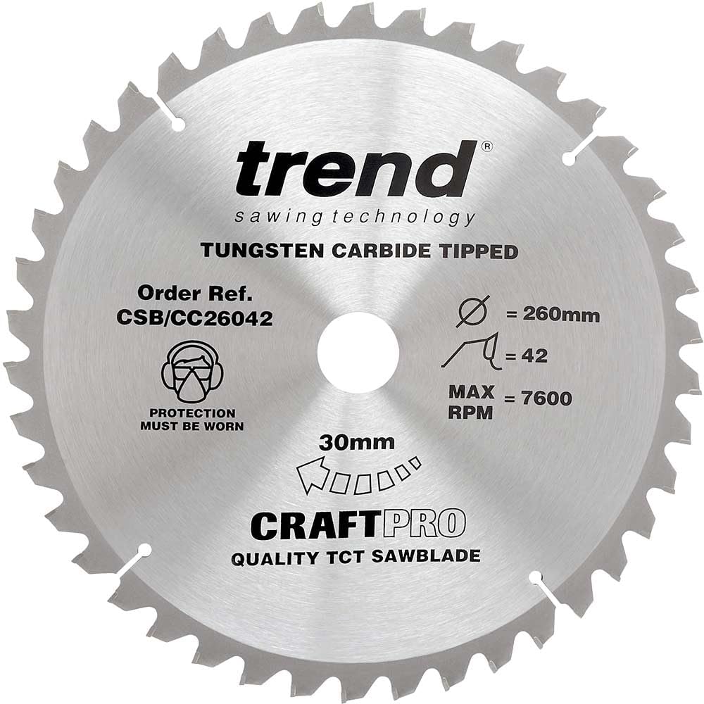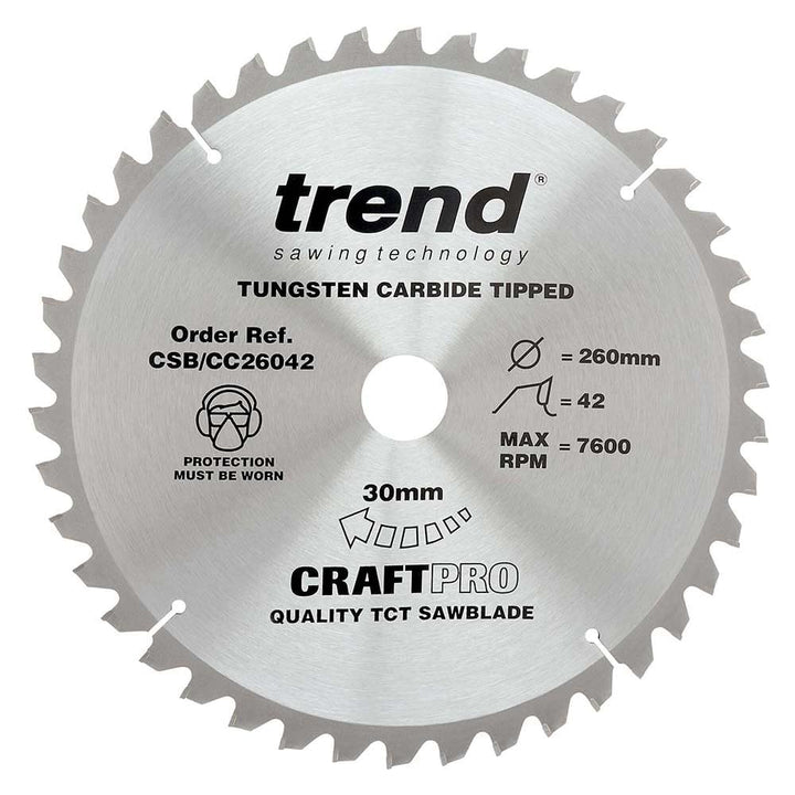 Trend CraftPro Negative Hook Crosscutting TCT Kreissägeblatt, 260mm Durchmesser x 42 Zähne x 30mm Bo