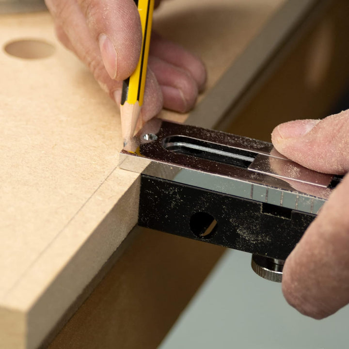 - QUADRAT- UND GÄHRUNGSFUNKTION: Mit 5 mm Schritten auf der Klinge eignet sich das Multi-Scribe Pro ideal für Layout-Arbeiten und zum Überprüfen und Übertragen von Tiefen von Zapfen, Nuten und Falzen in metrischen Massen.