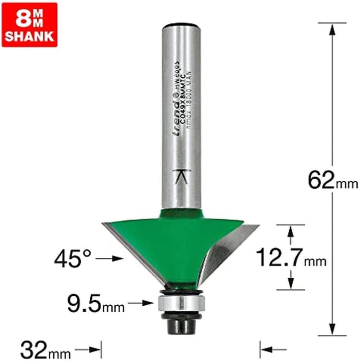 Trend Selbstgeführter Anfaser 45 Grad Winkel x 12,7 mm Fräser, C049X8MMTC