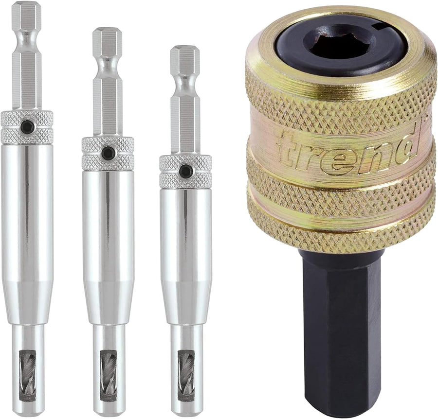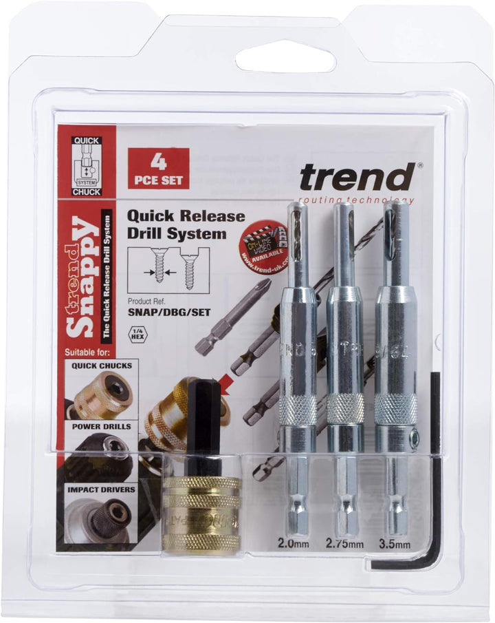 - PRÄZISES BOHREN: Das Trend Snappy 4-teilige Bohrerführungsset (Modellnummer SNAP/DBG/SET) ermöglicht präzises Vorbohren für Senkungen wie Scharniere oder Schlossblenden.