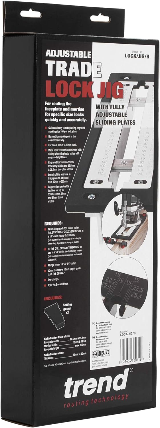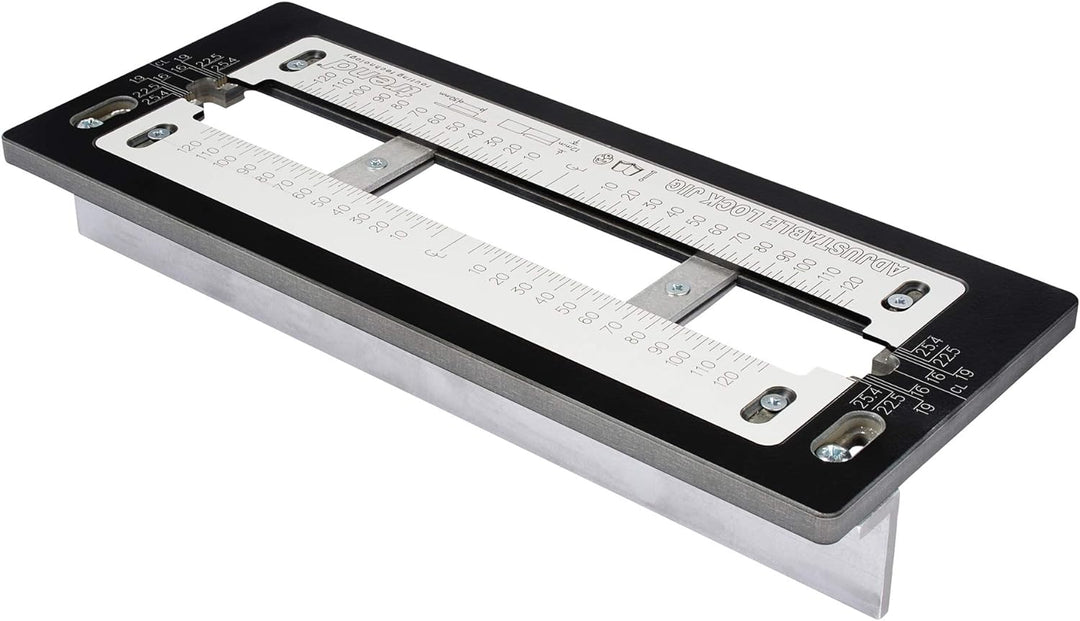 - VIELSEITIGES WERKZEUG: Das Trend Adjustable Trade Lock Jig eignet sich für die Montage von Schloss- und Riegelplatten und kann Platten von 30 mm bis 250 mm Länge aufnehmen.