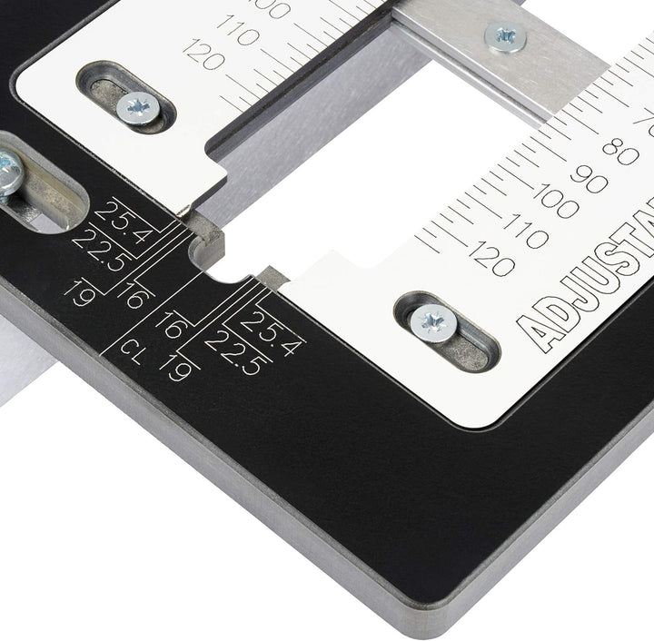 - KOMPATIBEL MIT VERSCHIEDENEN FÜHRUNGSBÜSCHEN: Die Jig verfügt über verstellbare Gleitplatten und Anschläge, die mit verschiedenen Führungsbüschendurchmessern und geraden Fräsern kompatibel sind.