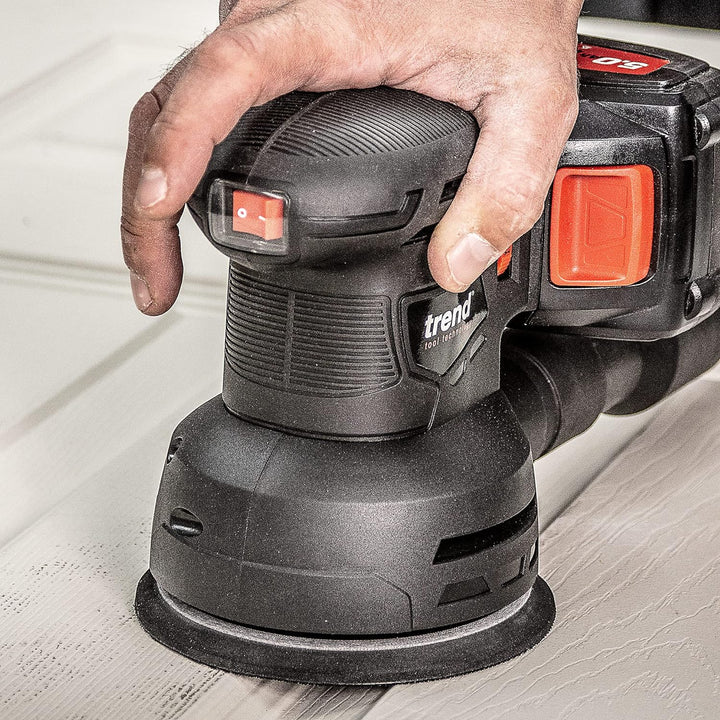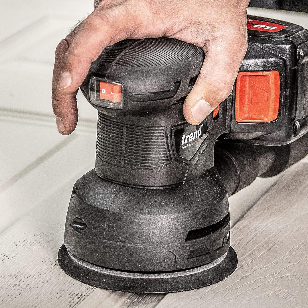 - LEISTUNGSSTARKER MOTOR: Der Trend 18V Akku-Exzenterschleifer verfügt über einen leistungsstarken Motor für effizientes Schleifen und eine lange Akkulaufzeit von 8 Stunden.