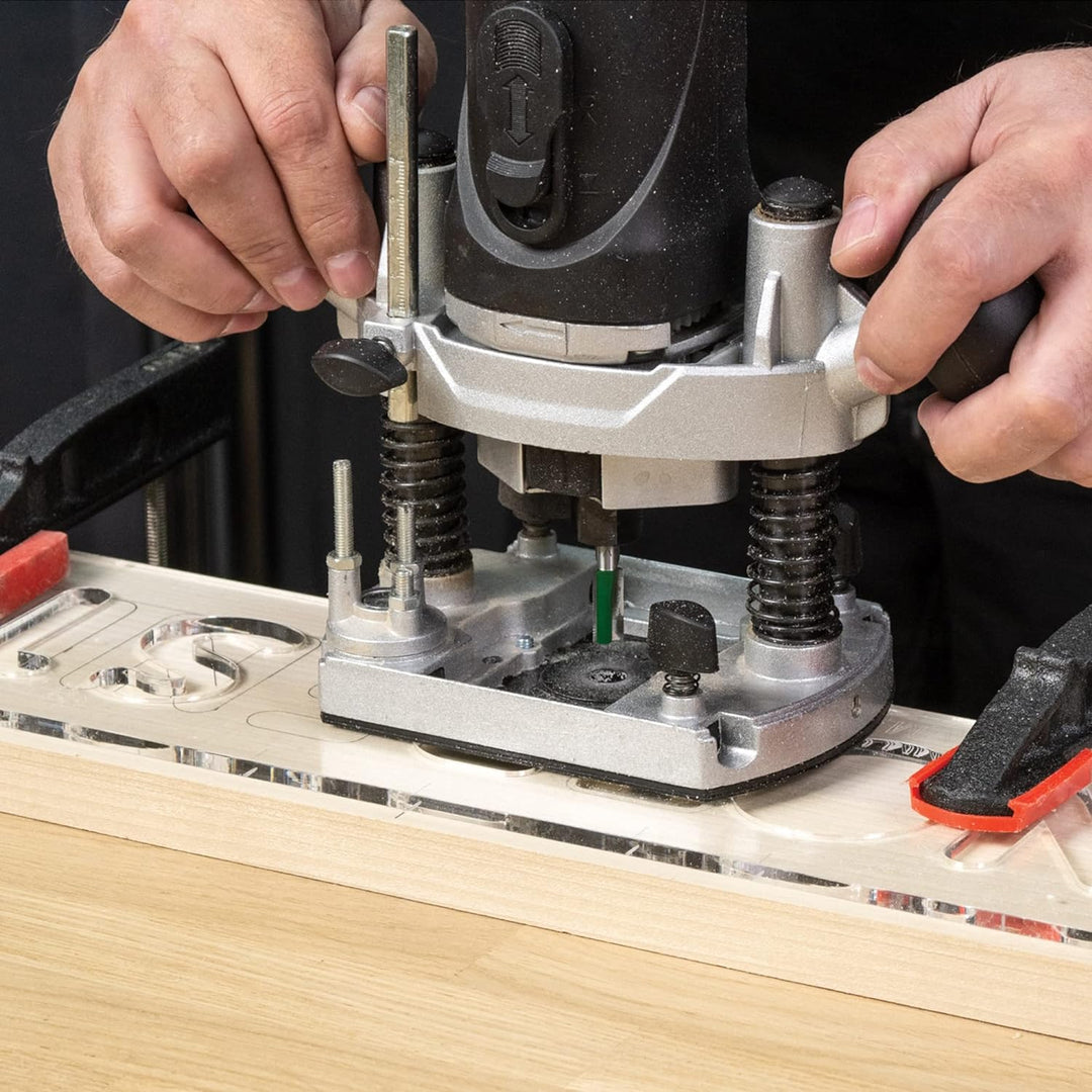 - EINFACHE ANWENDUNG: Die Vorlagen sind leicht zu positionieren; nutzen Sie eine Tauchfräse mit 1/2-Zoll-Führungshülse und 5/16-Zoll-Durchmesser-Bit für präzises Schneiden