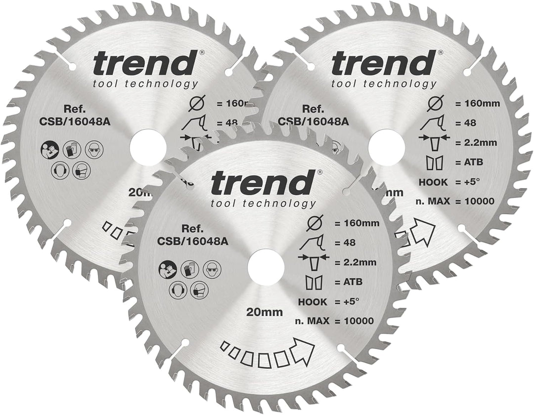 - HOCHWERTIGE SCHNITTKANTEN: Die Trend Craft Pro TCT Circular Blades Triple Pack ist ein professionelles Schneidwerkzeug, das eine hochwertige Oberfläche beim Schneiden verschiedener Materialien wie Holz, MDF, Spanplatten, Hartholz und Sperrholz bietet.