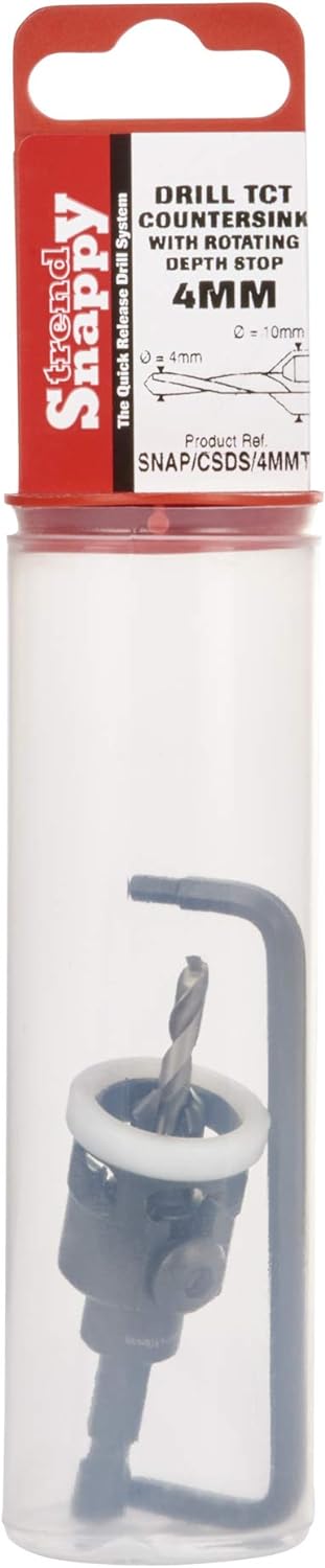 - VERSTELLBAR UND PRAKTISCH: Der Trend Snappy TCT 10mm Senker (Modellnummer SNAP/CSDS/4MMT) ist ein verstellbares und praktisches Werkzeug, das mit einer nicht abfärbenden Tiefenbegrenzung und einem 4mm HSS-Bohrer geliefert wird.
