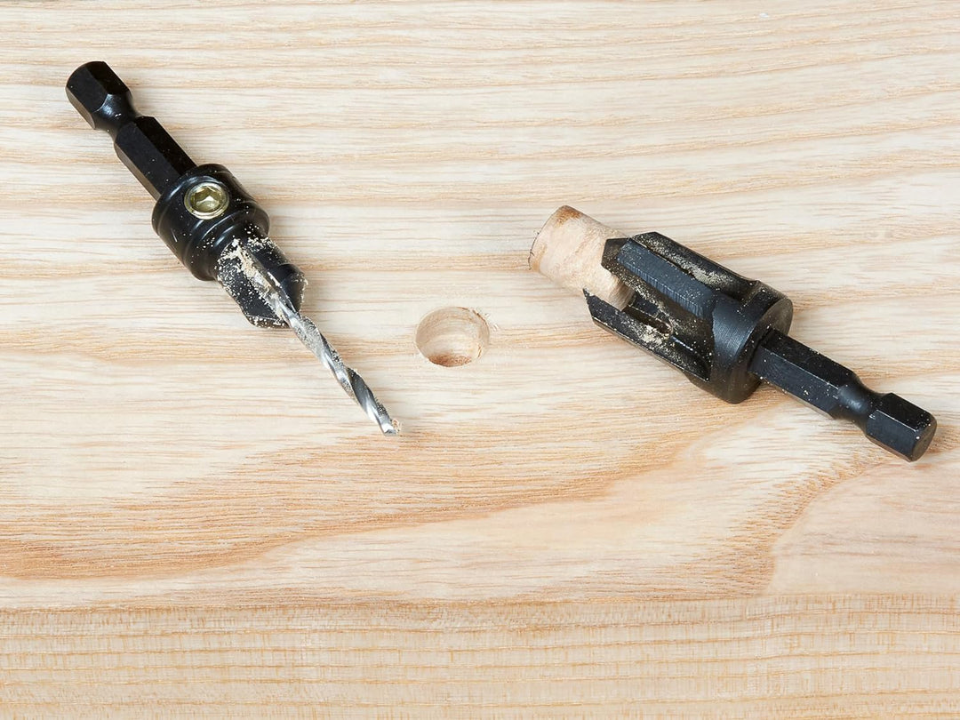 - UNTERSCHIEDLICHE GRÖssEN: Enthält einen Senker für Schrauben der Grösse 8, einen Senker für Schrauben der Grösse 10 und zwei Lochschneider mit Durchmessern von 9,5 mm und 12,7 mm.
