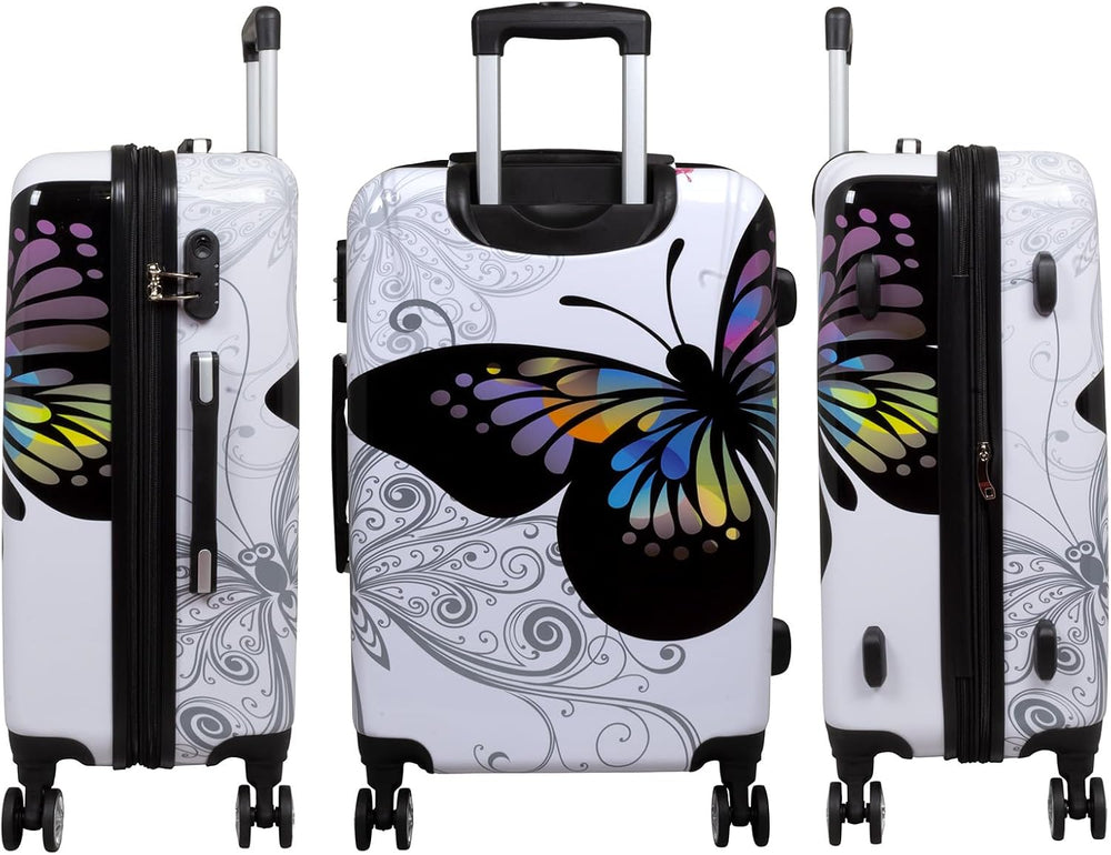 Trendyshop365 grosser Reisekoffer Hartschale 77 cm - Butterfly weiss Reisekoffer - Grösse L Butterfl