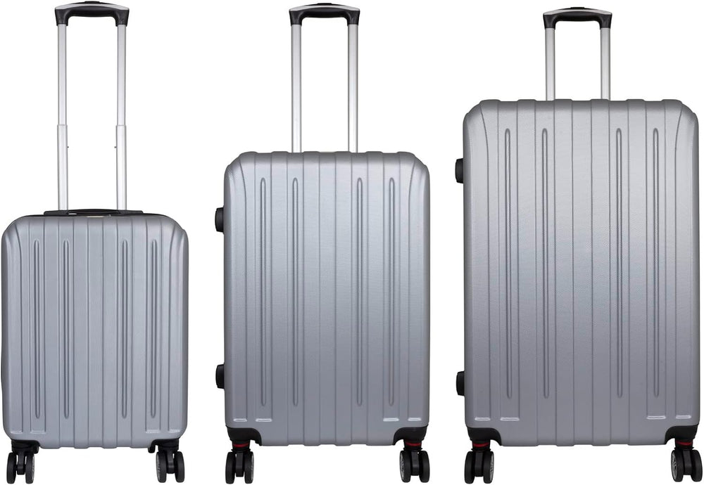 Trendyshop365 Koffer-Set 3-teilig Hartschale Dallas 4 Räder Zahlenschloss Silber Kofferset 3-teilig