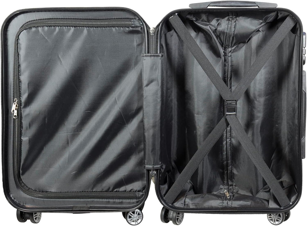 - Koffer innen mit Reissverschluss-Trennfach und Kreuzspanngurt, beidseitig packbar,, Innenfutter mit Reissverschluss für Extrafach, fest integriertes Zahlenschloss