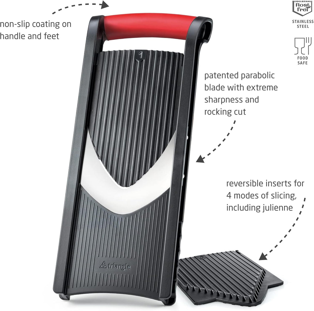 - ZUM zügigen Schneiden von 1 mm, 3 mm und 5 mm Scheiben und 3x3 mm Julienne-Streifen aus Obst und Gemüse. Perfekt gleichmässige Scheiben durch parallele Einschübe