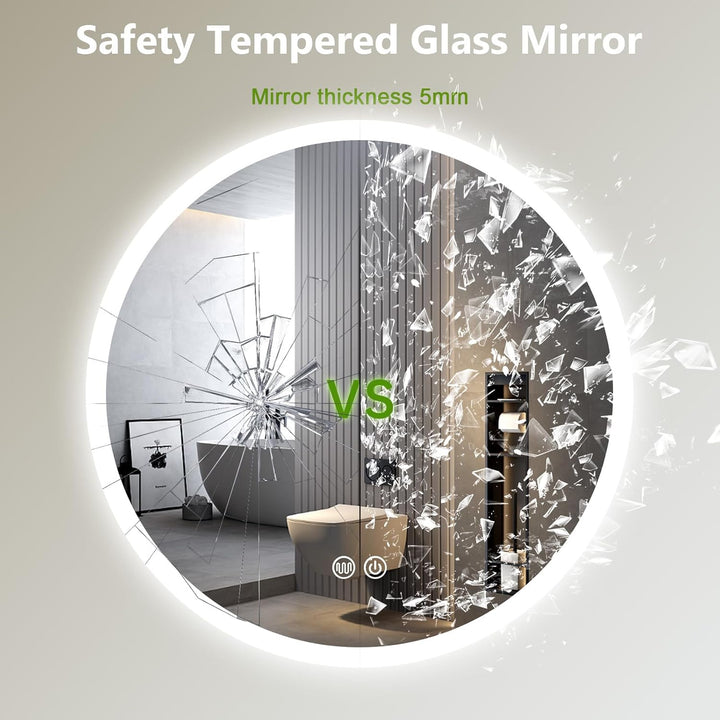 • Wasserdichtigkeitsklasse IP54: Runder Spiegel, der gesamte LED-Badezimmerspiegel erfüllt die Schutzart IP54, unser runder Badezimmerspiegel wird mit einem integrierten Montagepad geliefert. Kein ständiges Spiegelwischen mehr! So können Sie sich auf