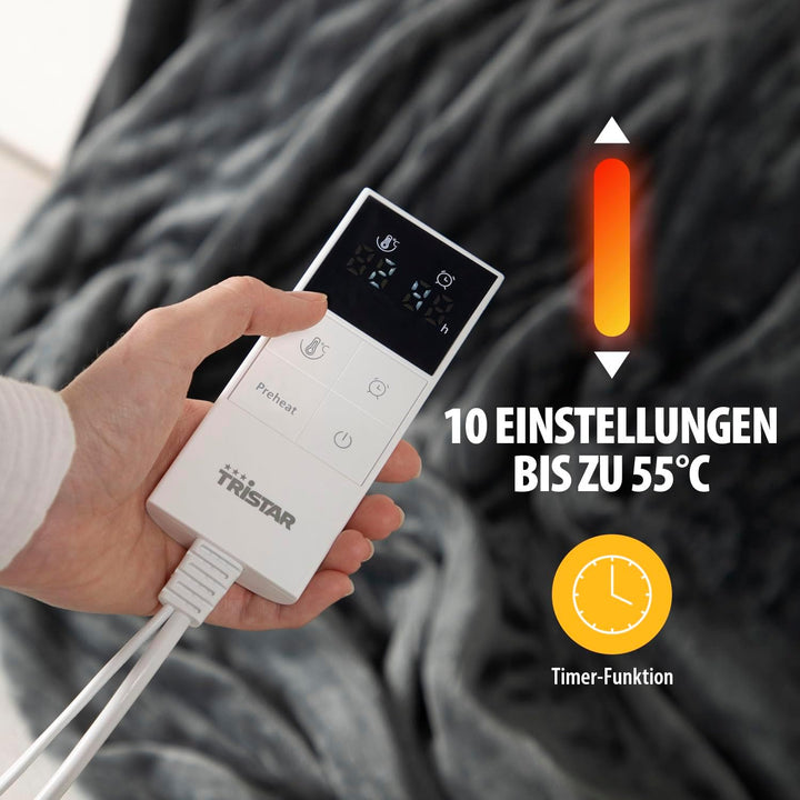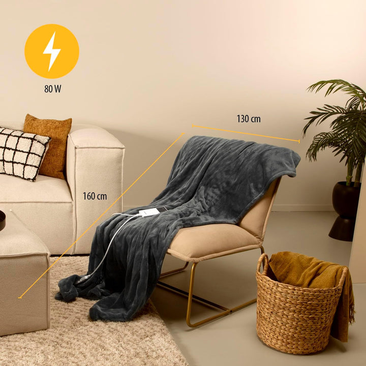 - Wohlfühlwärme für kühle Tage: Die 160 x 130 cm grosse Fleece-Heizdecke hält Sie angenehm warm.