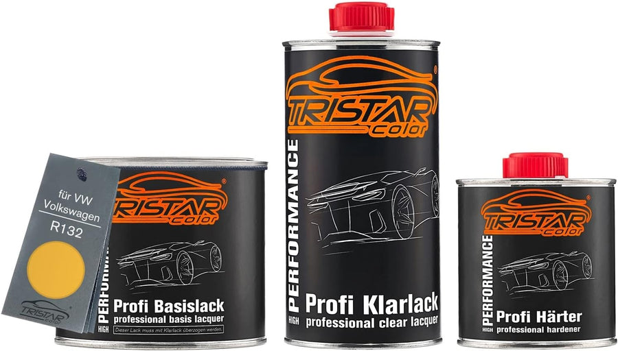 Autolack Set Dose spritzfertig für VW/Volkswagen R132 Postgelb Basislack + 2K Klarlack 1,25L
