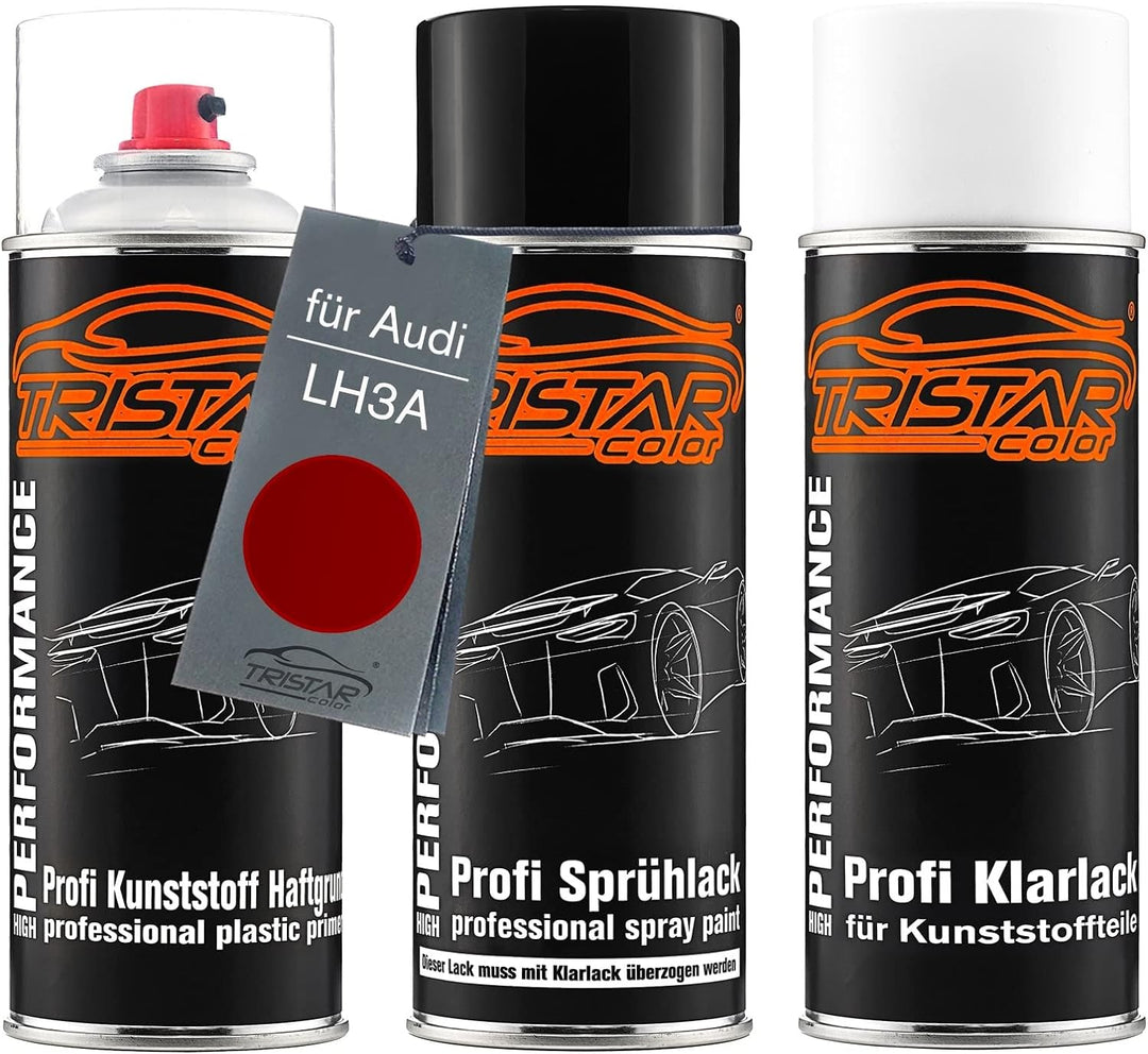 Autolack Spraydosen Set für Kunststoff Stossstange für Audi LH3A Fuschrot Haftgrund Basislack Klarla