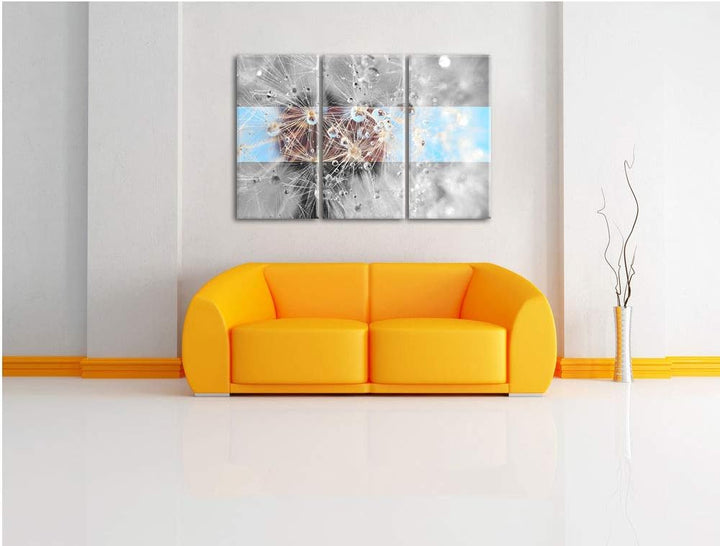 Tropfen an Pusteblume abstrakt schwarz/weiss 3-Teiler Leinwandbild 120x80 Bild auf Leinwand, XXL rie