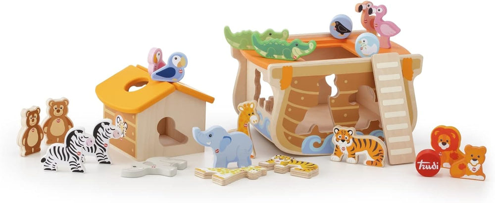 - Mit 10 Paaren zweidimensionaler Holztiere