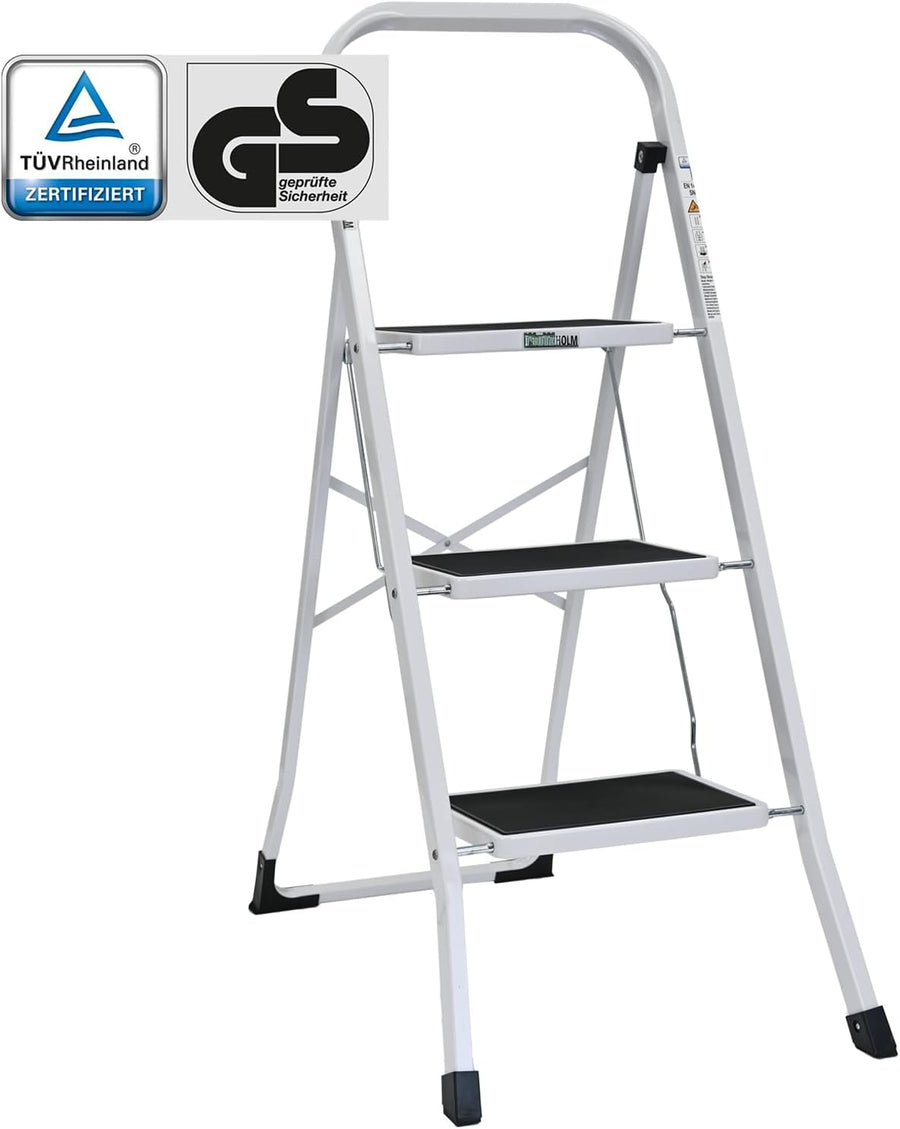 - VIELSEITIG VERWENDBAR: Die klappbare Trittleiter aus pulverbeschichtetem Stahl ist ein schnell einsatzbereiter Helfer zum Erreichen höher gelegener Gegenstände in Haushalt, Werkstatt oder Garage