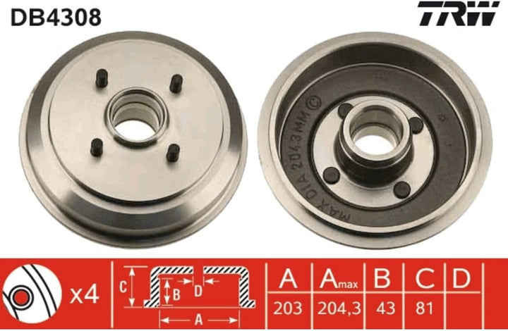 TRW Automotive AfterMarket DB4308 Bremstrommel